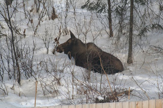 We had a Valentine's Day visitor at our house on Saturday. I think he is the same moose as the other pictures but his rack is starting to grow in really well. Moose grow, lose and regrow their racks each year.